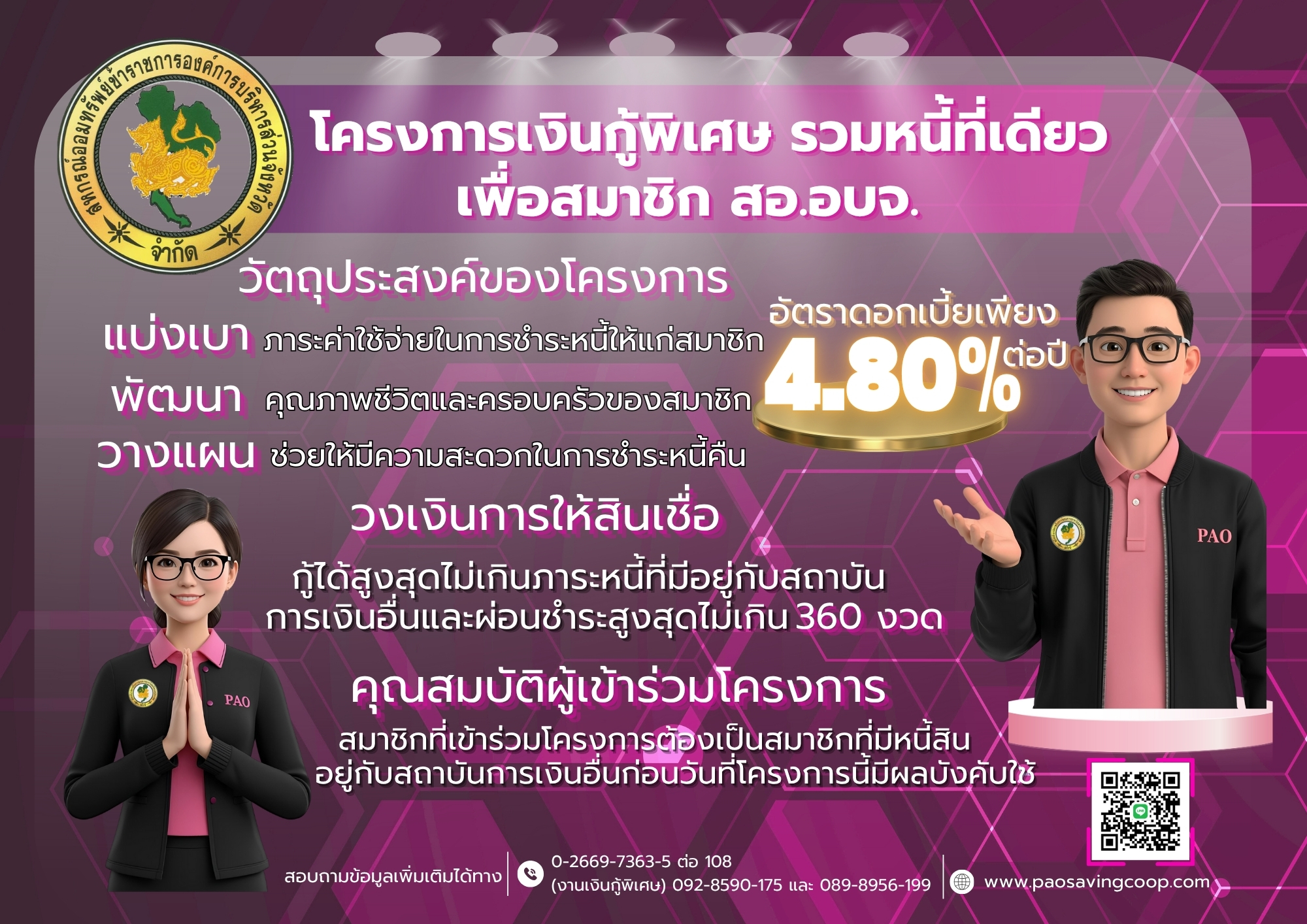 53. โครงการเงินกู้พิเศษรวมหนี้ที่เดียว เพื่อสมาชิก สอ.อบจ.