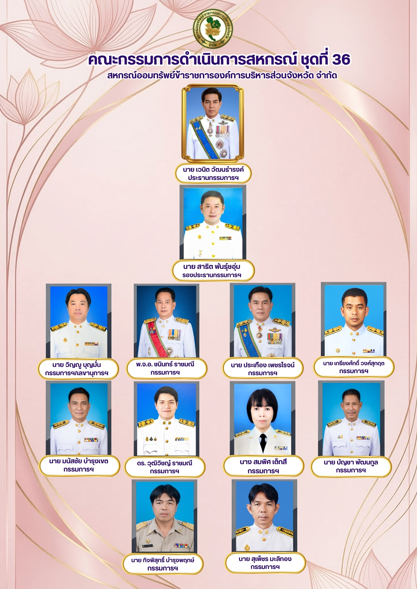 รายนามกรรมการดำเนินการสหกรณ์ออมทรัพย์ข้าราชการองค์การบริหารส่วนจังหวัด จำกัด ชุดที่ 36 ประจำปี 2569