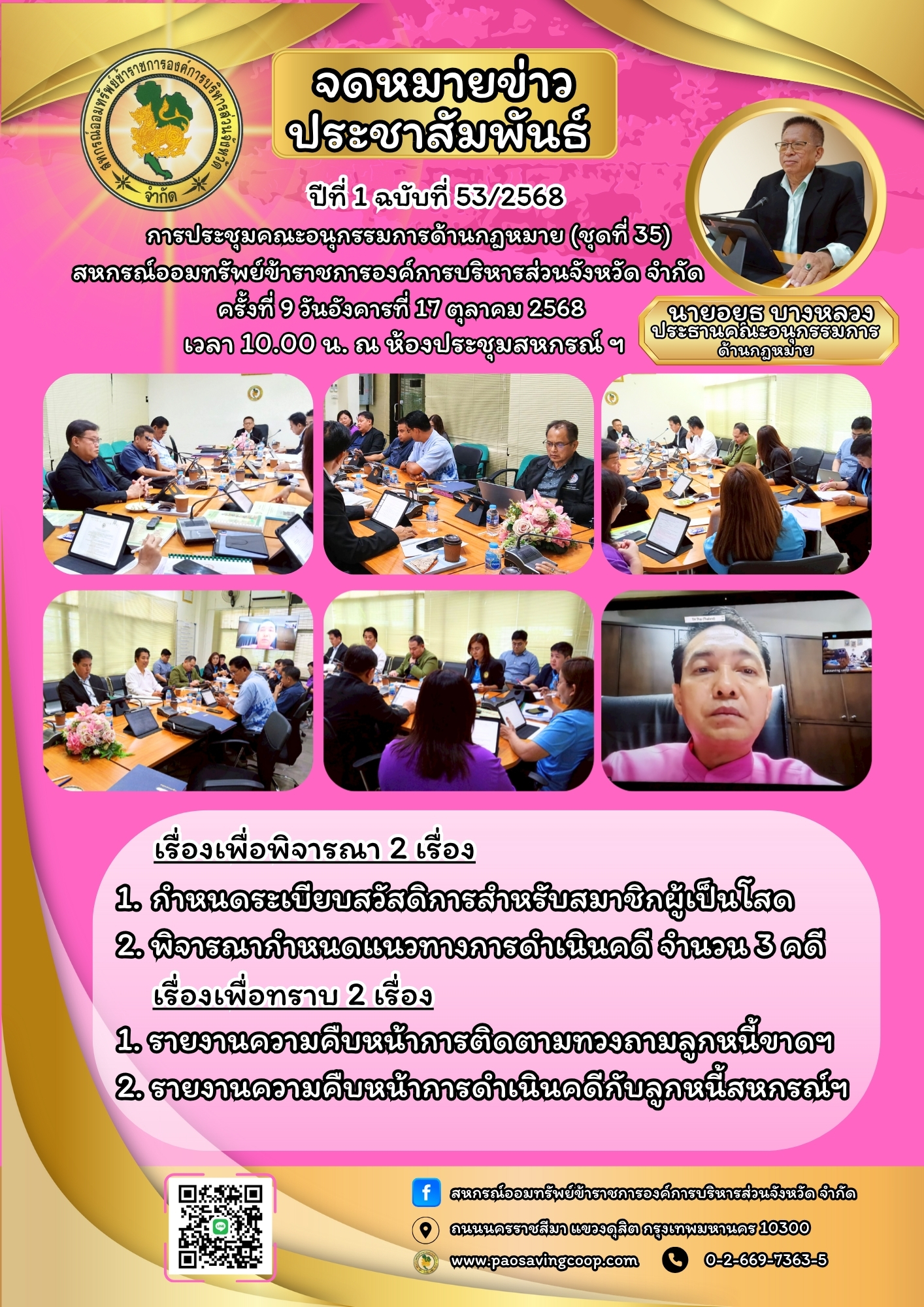 ประชุมคณะอนุกรรมการด้านกฏหมาย ประจำวันอังคารที่ 17 ตุลาคม 2568