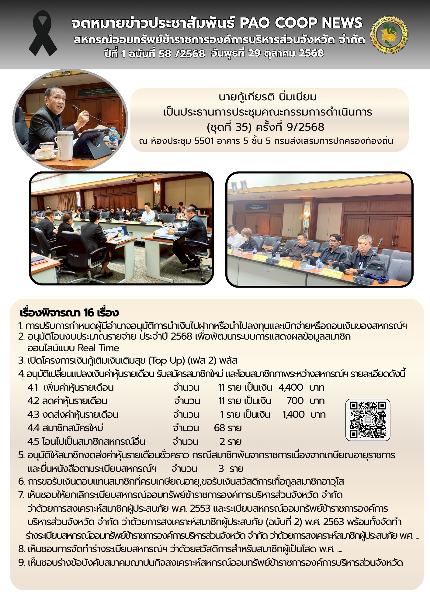 ประชุมคณะกรรมการดำเนินการ ฉบับที่ 58 ประจำวันพุธที่ 29 ตุลาคม 2568
