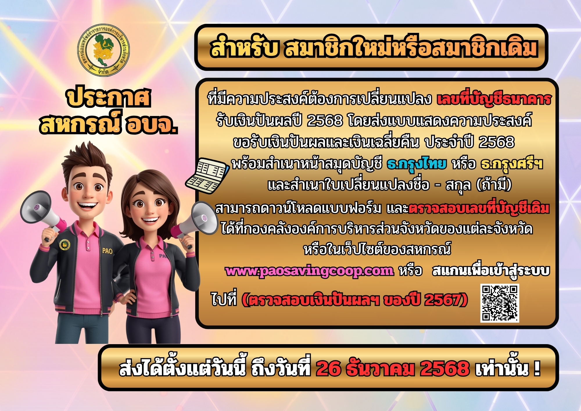 การตรวจสอบและเปลี่ยนแปลงเลขบัญชีธนาคารรับเงินปันผลและเฉลี่ยคืนประจำปี 2568...