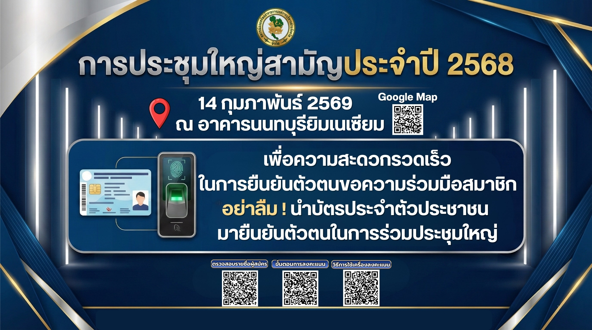เชิญชวนสมาชิก เข้าร่วมประชุมใหญ่สามัญประจำปี 2568 ซึ่งจะมีก...