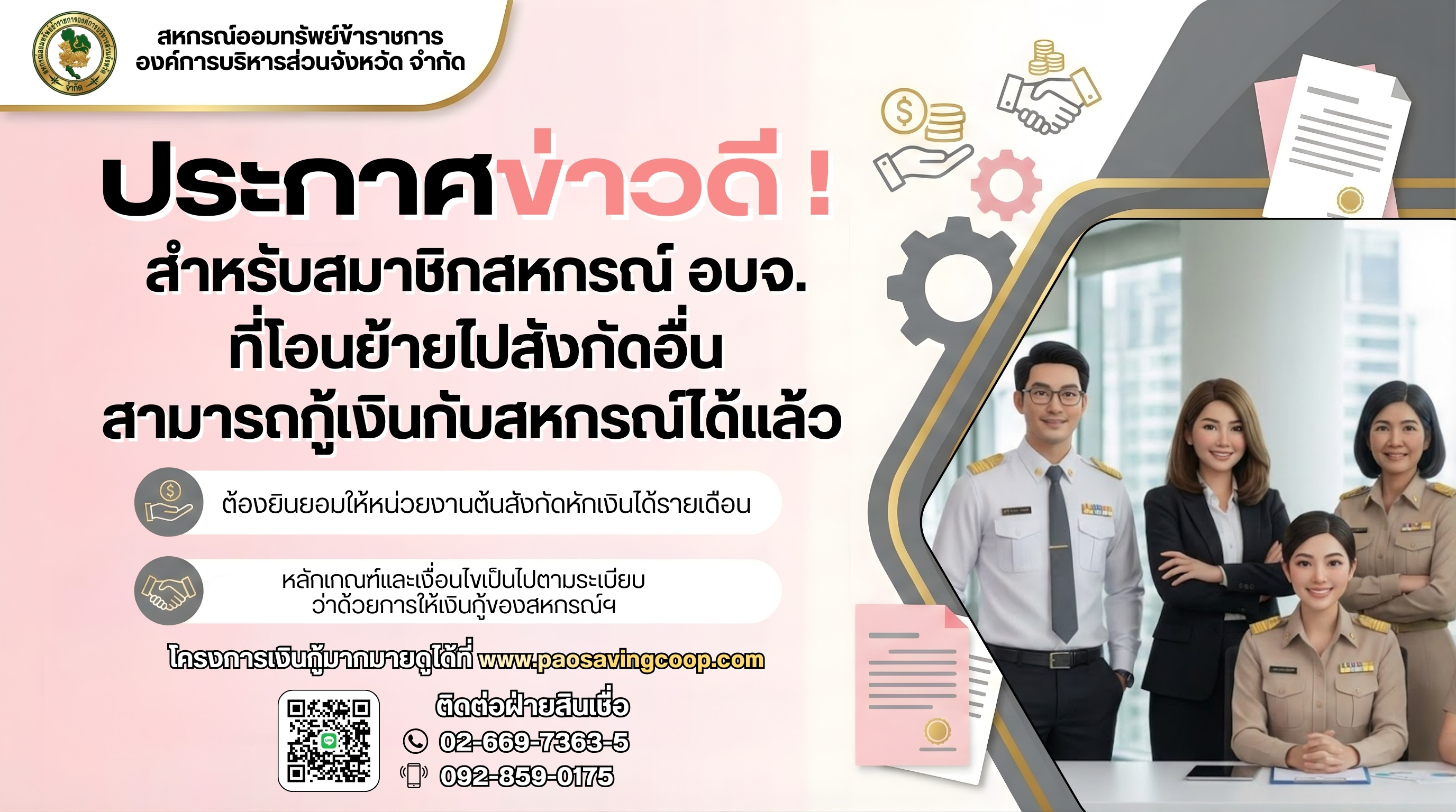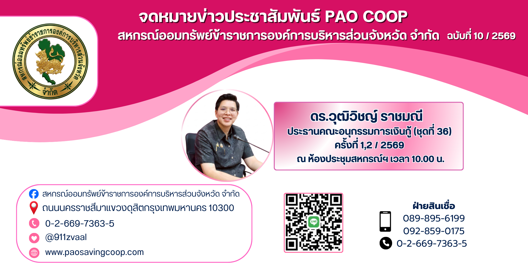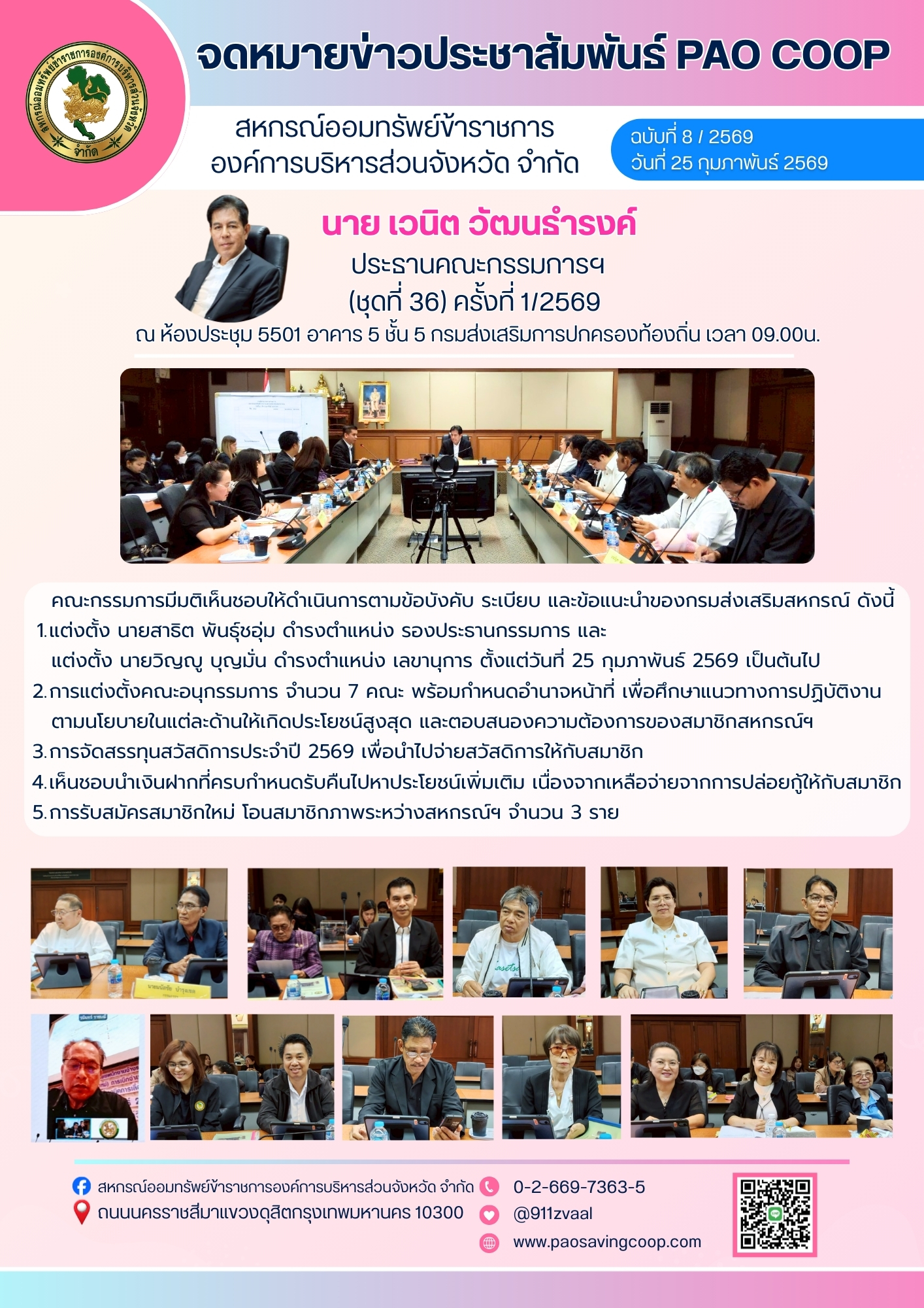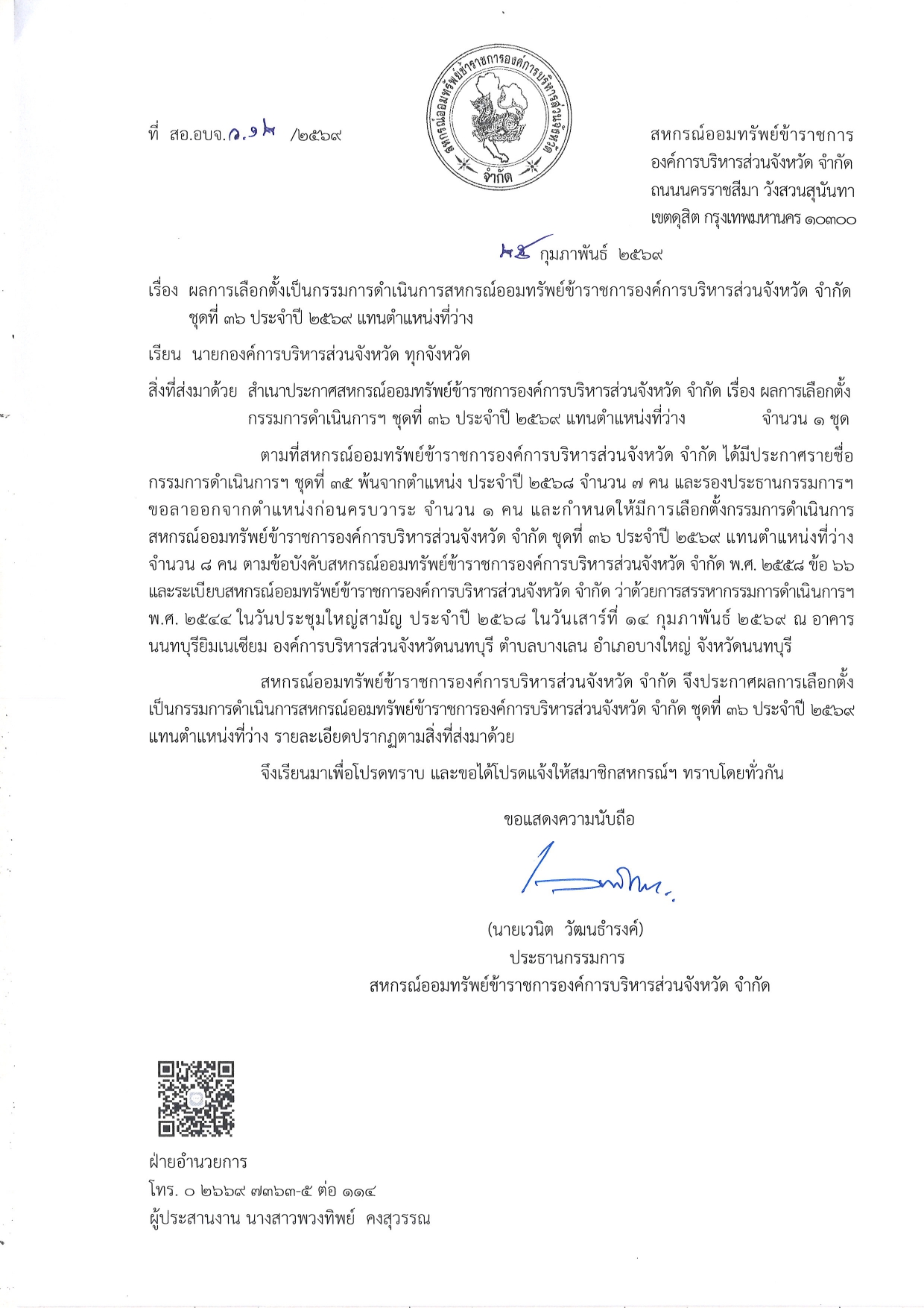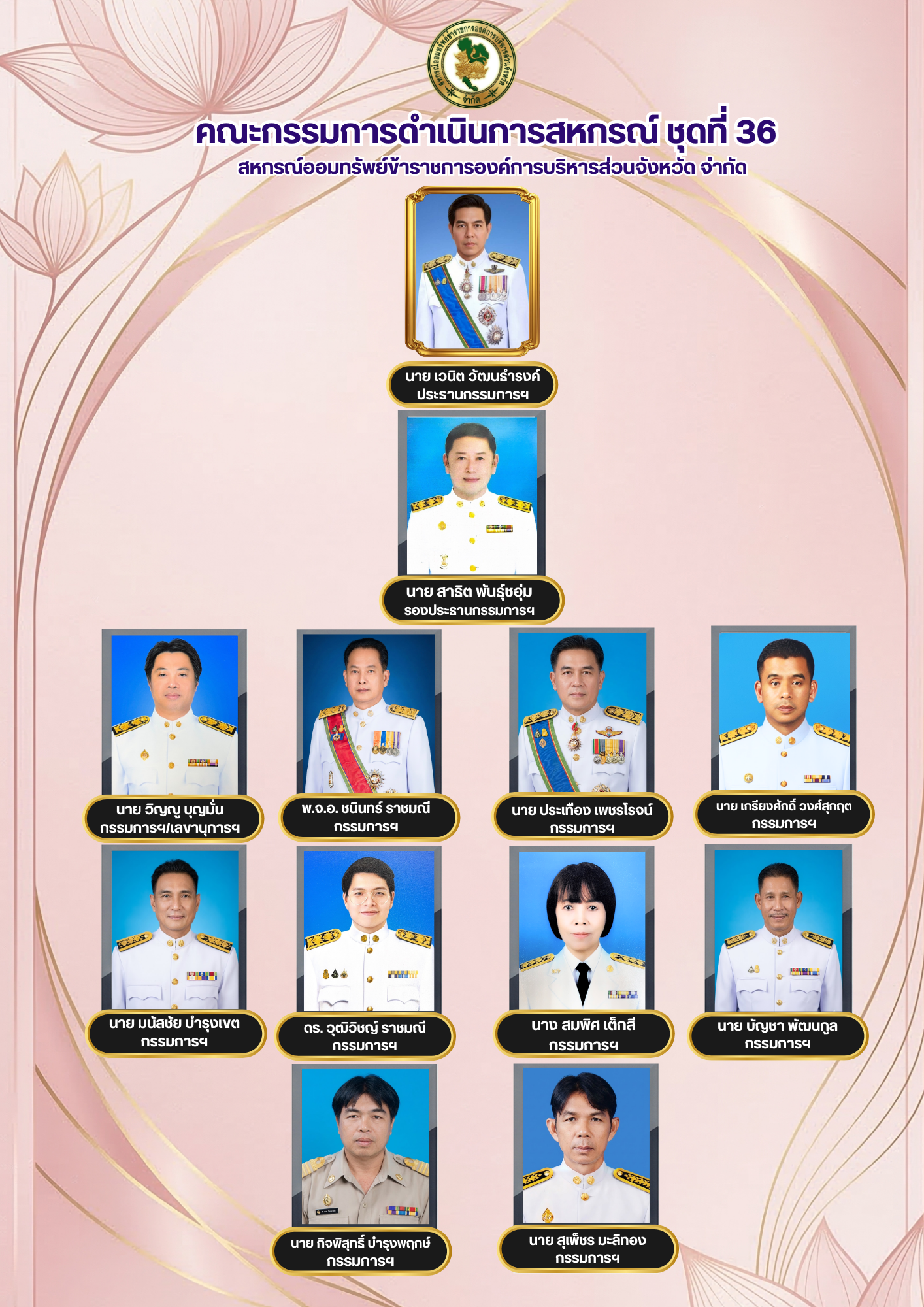 รายชื่อกรรมการดำเนินการสหกรณ์ออมทรัพย์ข้าราชการองค์การบริหารส่วนจังหวัด จำกัด ชุดที่ ๓๖ ประจำปี ๒๕๖๙...