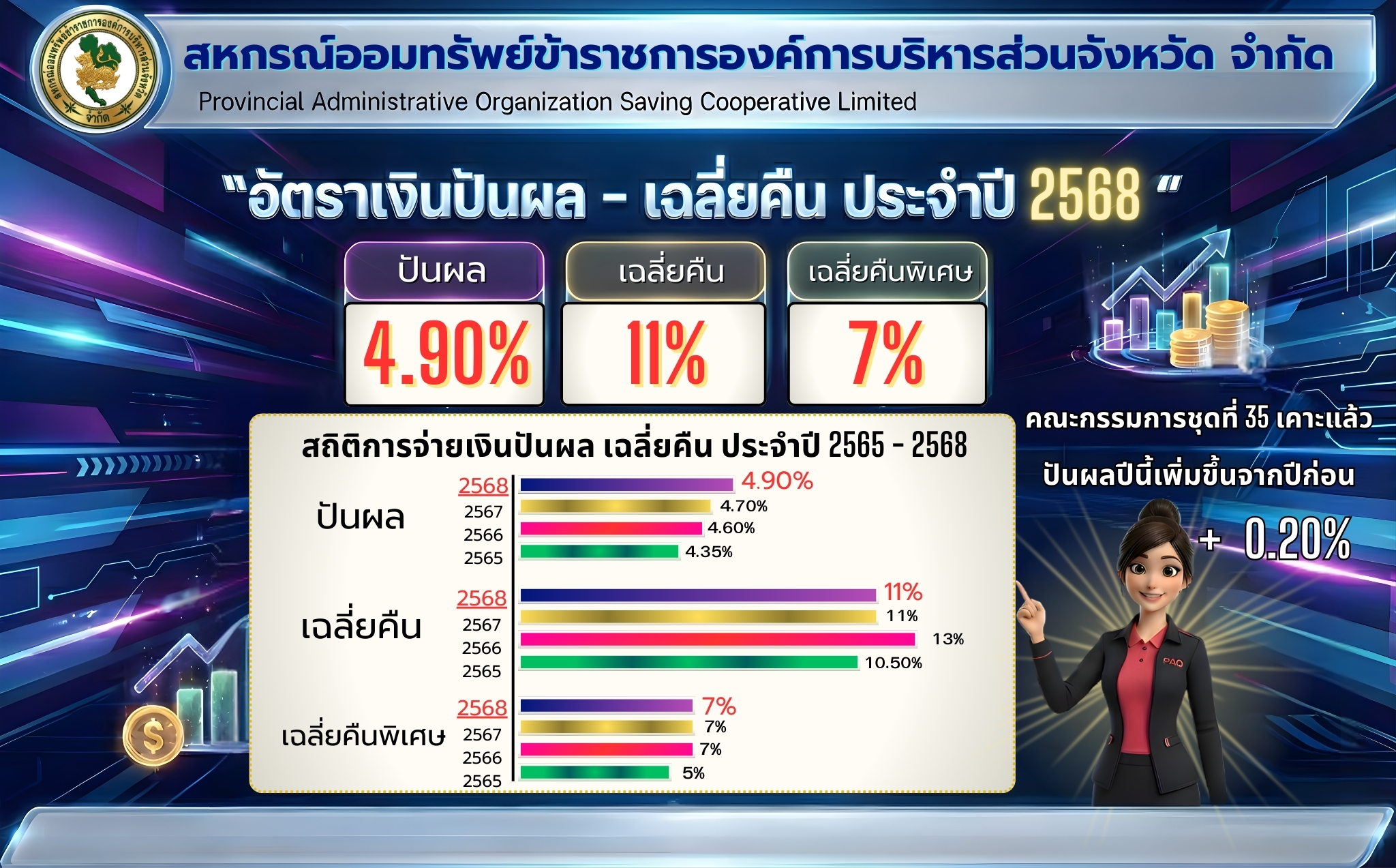 กรรมการชุดที่ 35 เคาะแล้ว ! ปันผลปีนี้เพิ่มขึ้น 0.20% จากปีก่อน