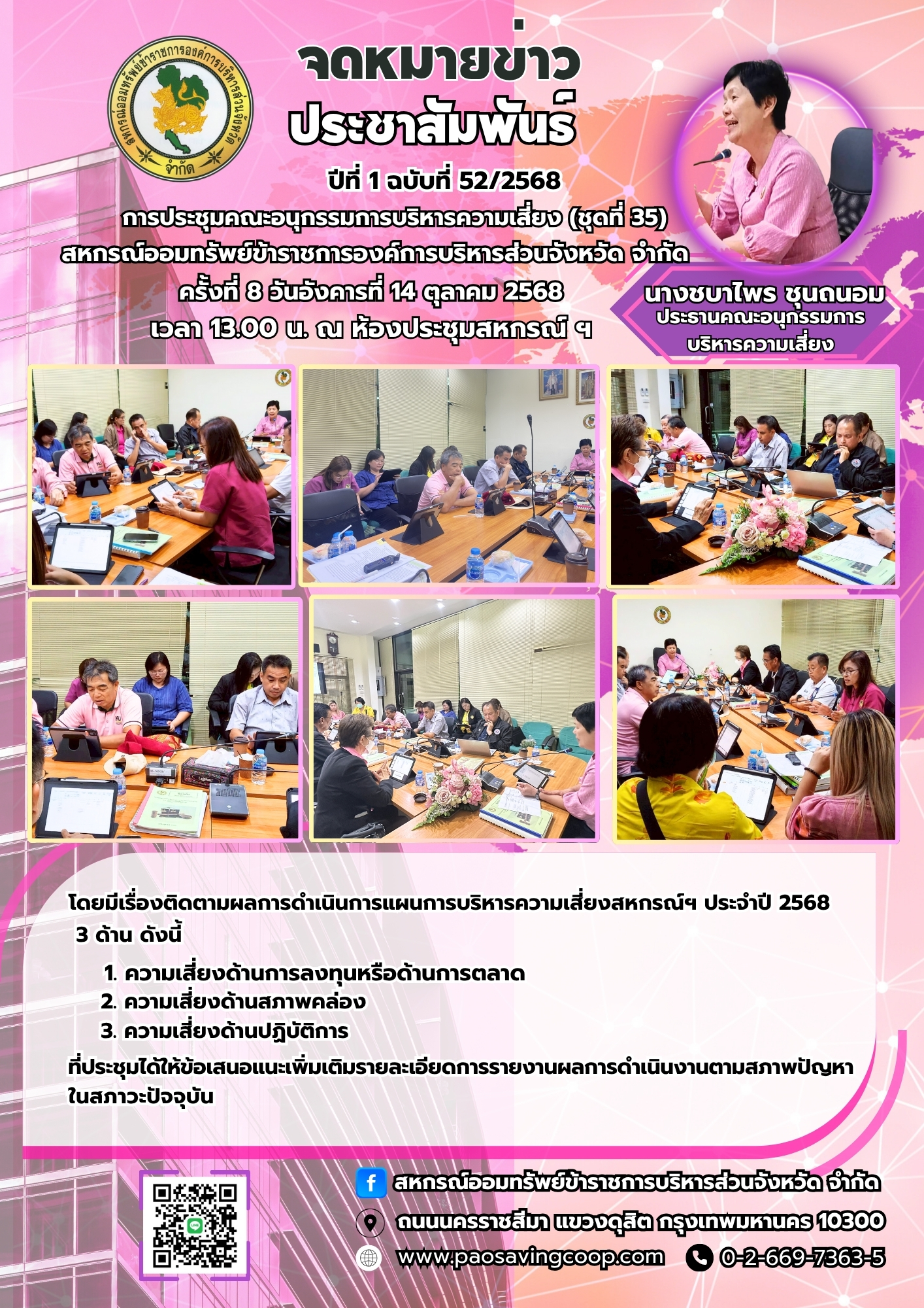 ประชุมคณะอนุกรรมการบริหารความเสี่ยง ประจำวันอังคารที่ 14 ตุลาคม 2568