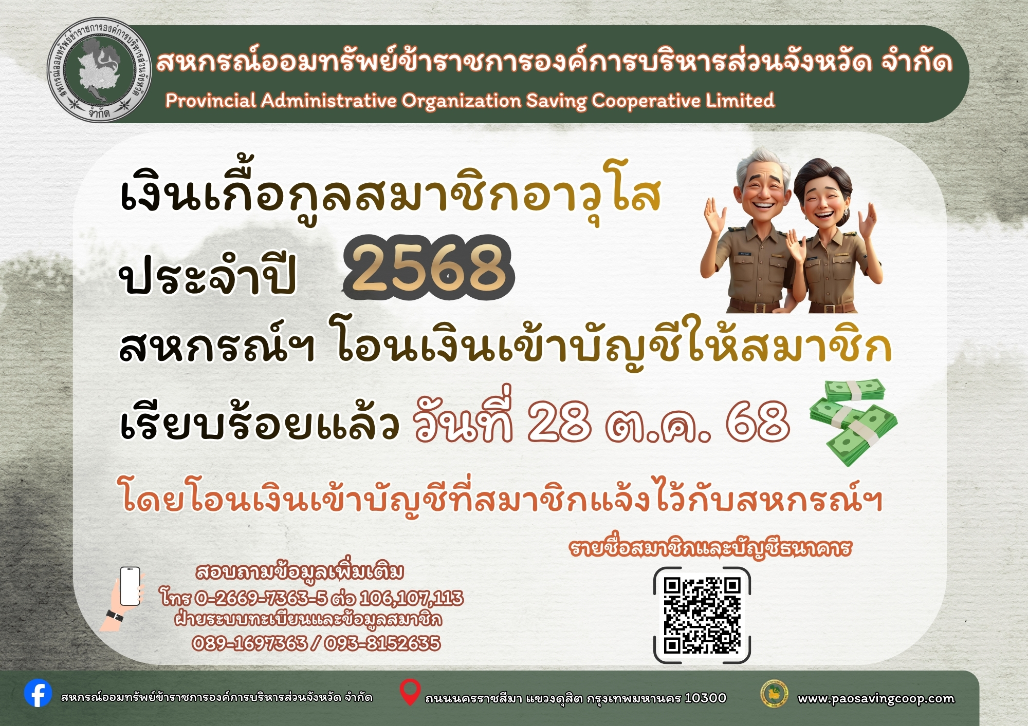 เงินเกื้อกูลสมาชิกอาวุโสประจำปี 2568