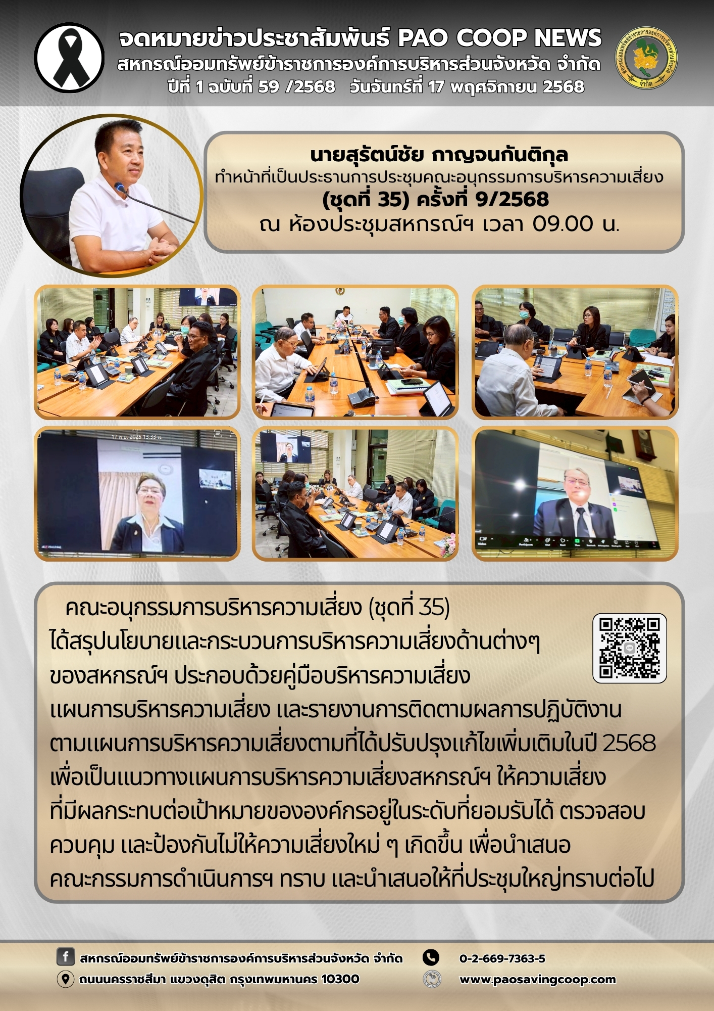 การประชุมคณะอนุกรรมการบริหารความเสี่ยง ฉบับที่ 59 ประจำวันจันทร์ที่ 17 พฤศจิกายน 2568 ...