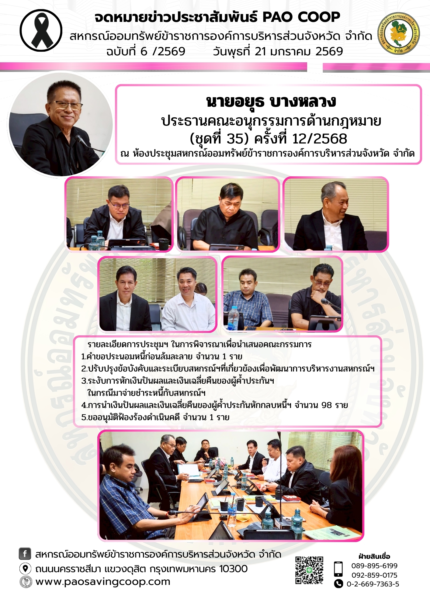 ประชุมคณะอนุกรรมการด้านกฎหมาย ฉบับที่ 6 ประจำวันพุธที่ 21 มกราคม 69
