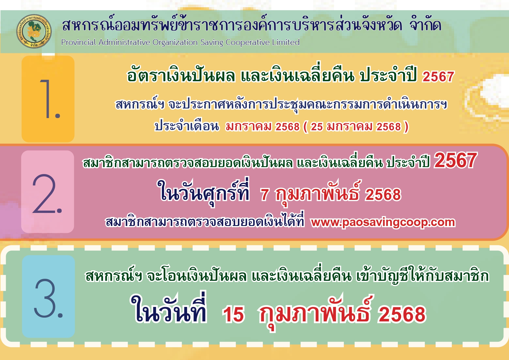 อัตราเงินปันผล และเงินเฉลี่ยคืน ประจำปี 2567