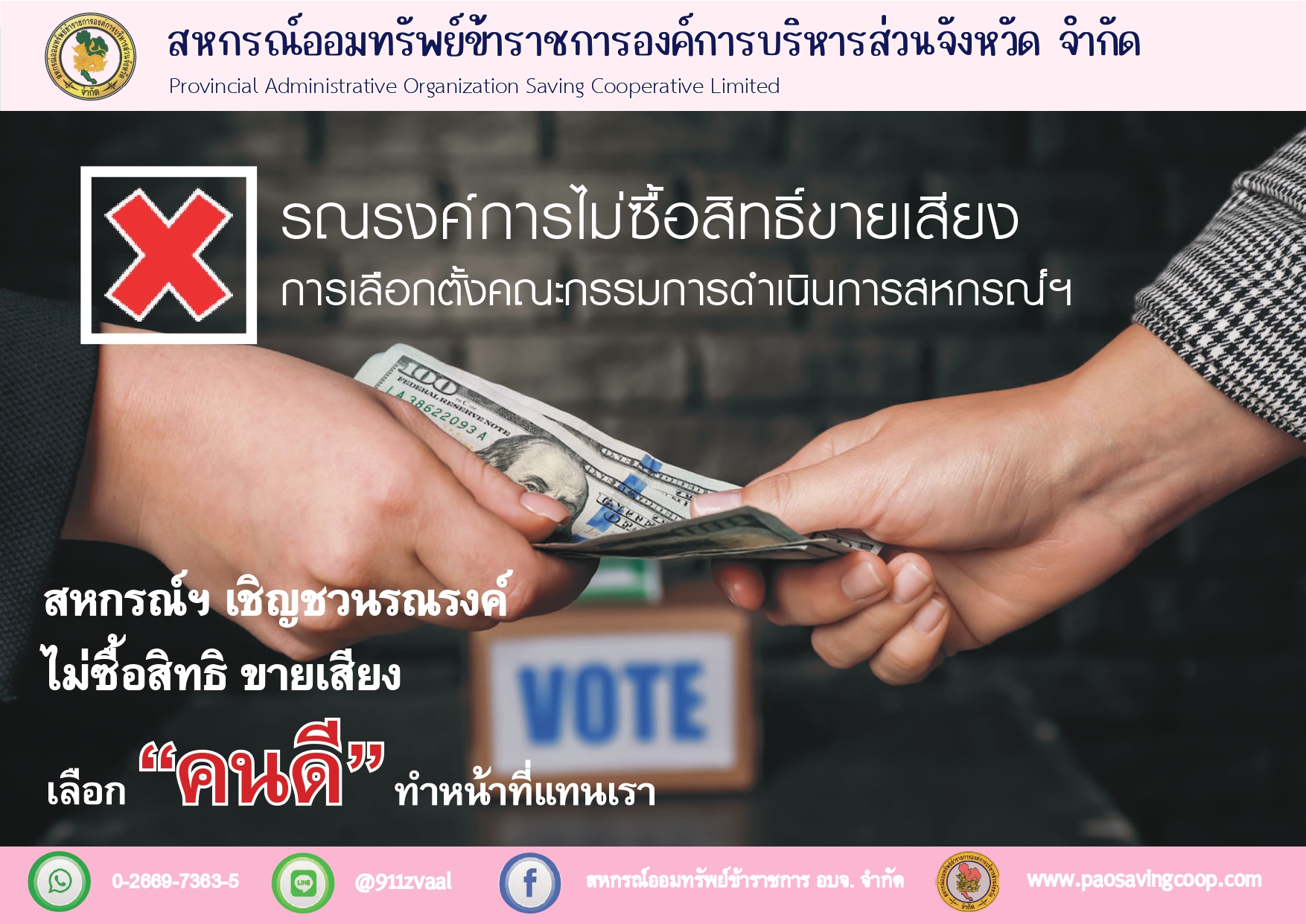 รณรงค์การไม่ซื้อสิทธิขายเสียงการเลือกตั้งคณะกรรมการดำเนินการสหกรณ์ฯ...