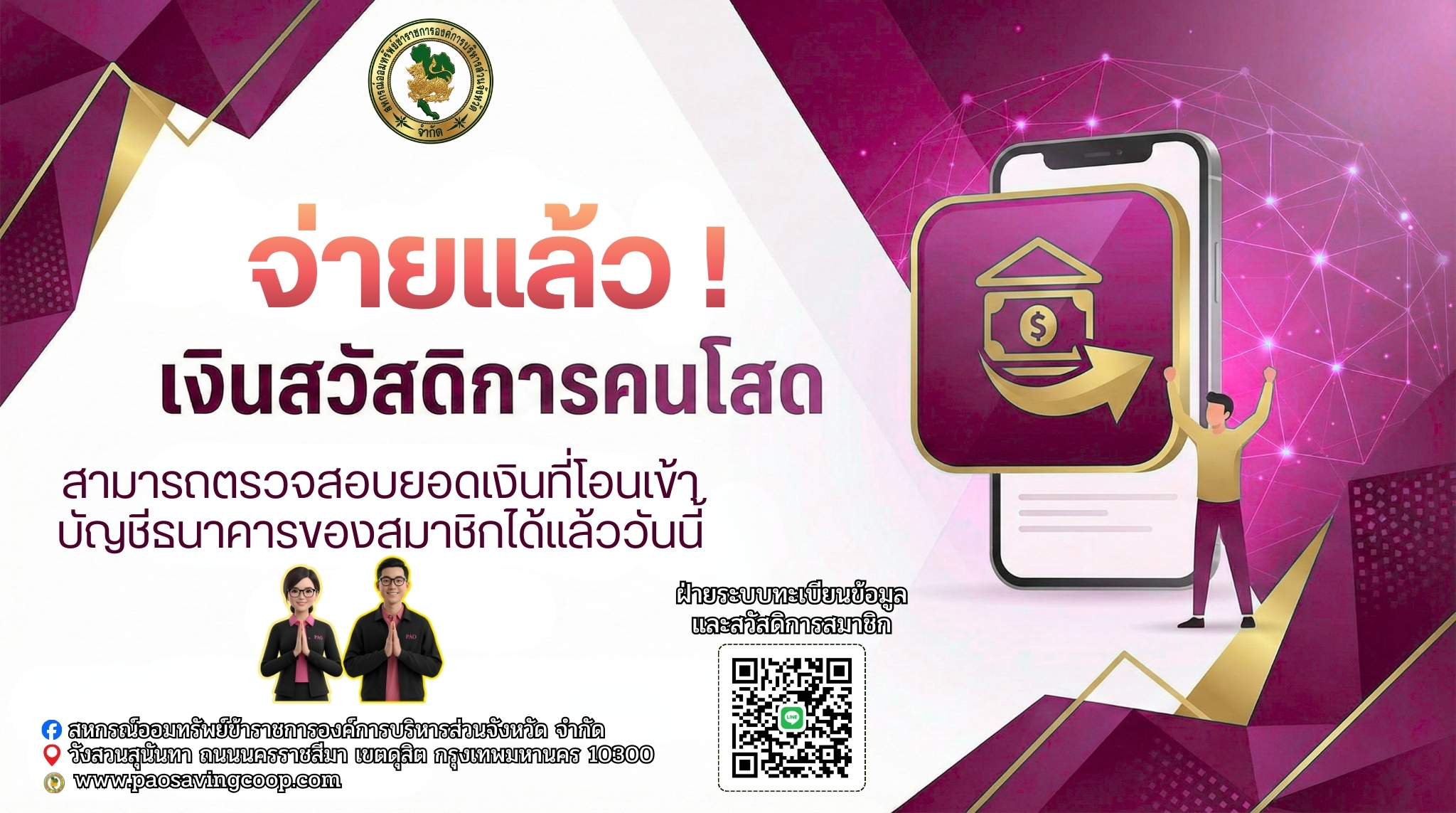 ประกาศ แจ้งสมาชิกเรื่องรายละเอียดการจ่ายเงินสวัสดิการคนโสด