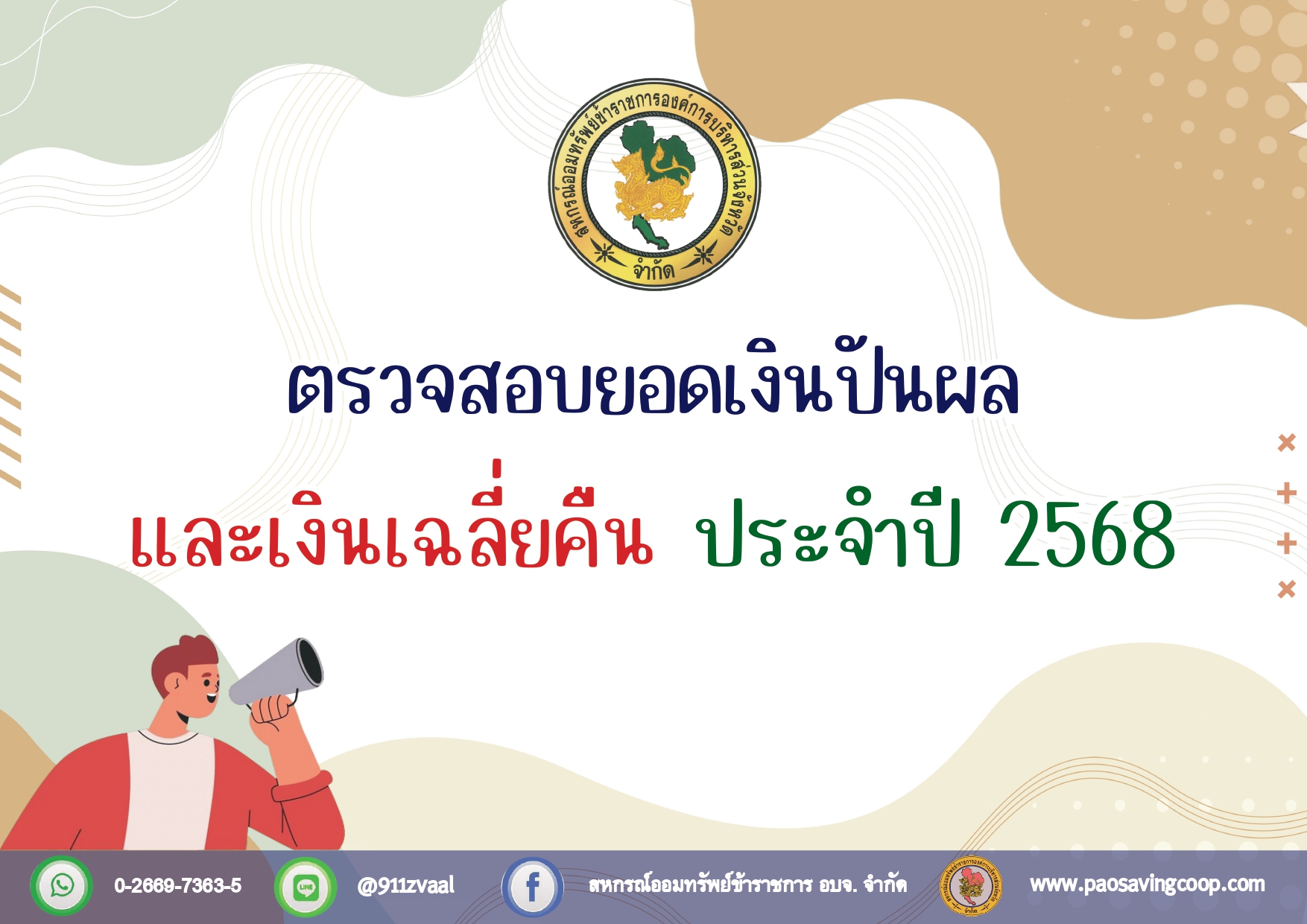 ยอดเงินปันผล และเงินเฉลี่ยคืน ประจำปี 2568 (รายจังหวัด)