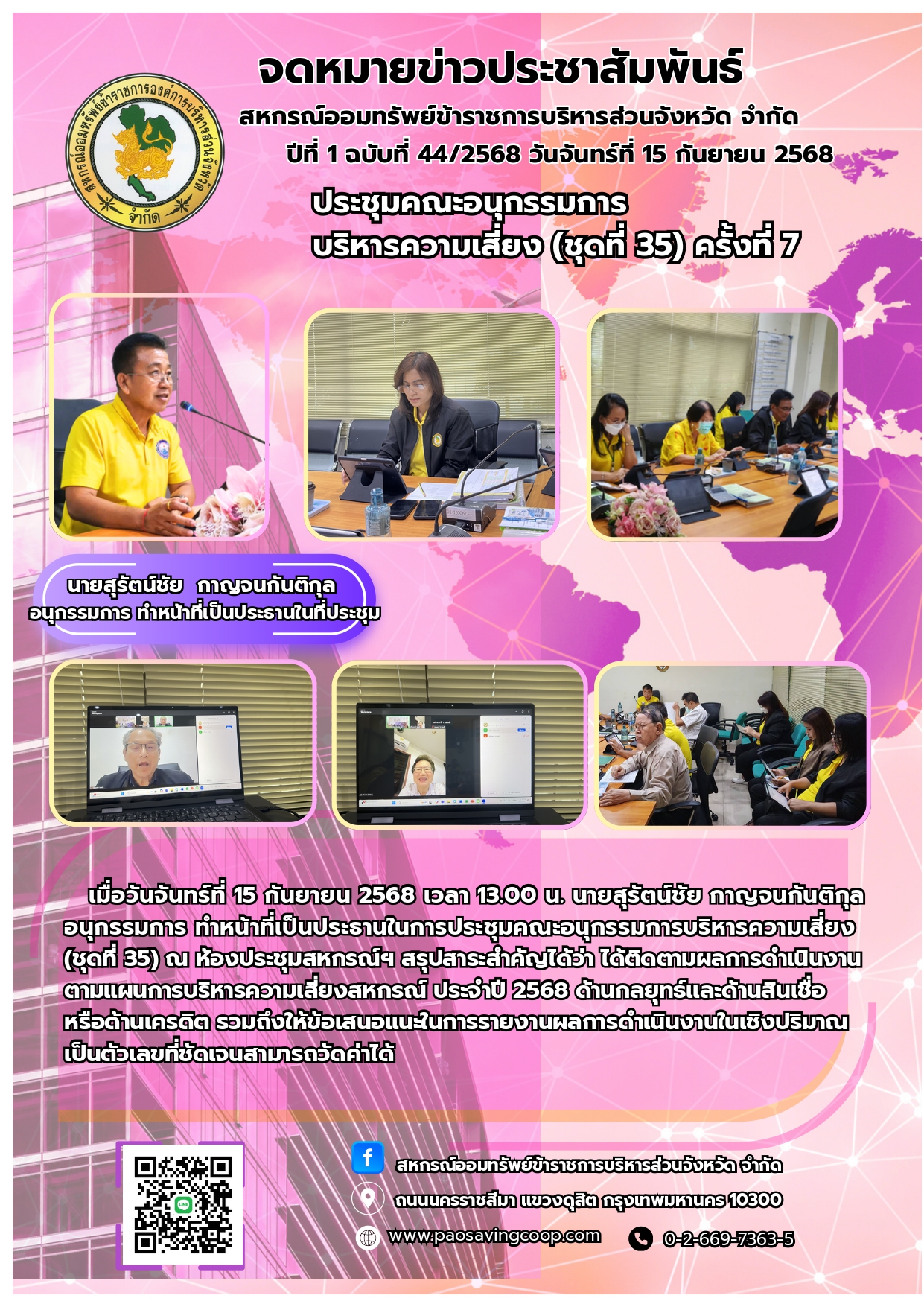 ปีที่ 1 ฉบับที่ 44/2568 วันจันทร์ที่ 15 กันยายน 2568