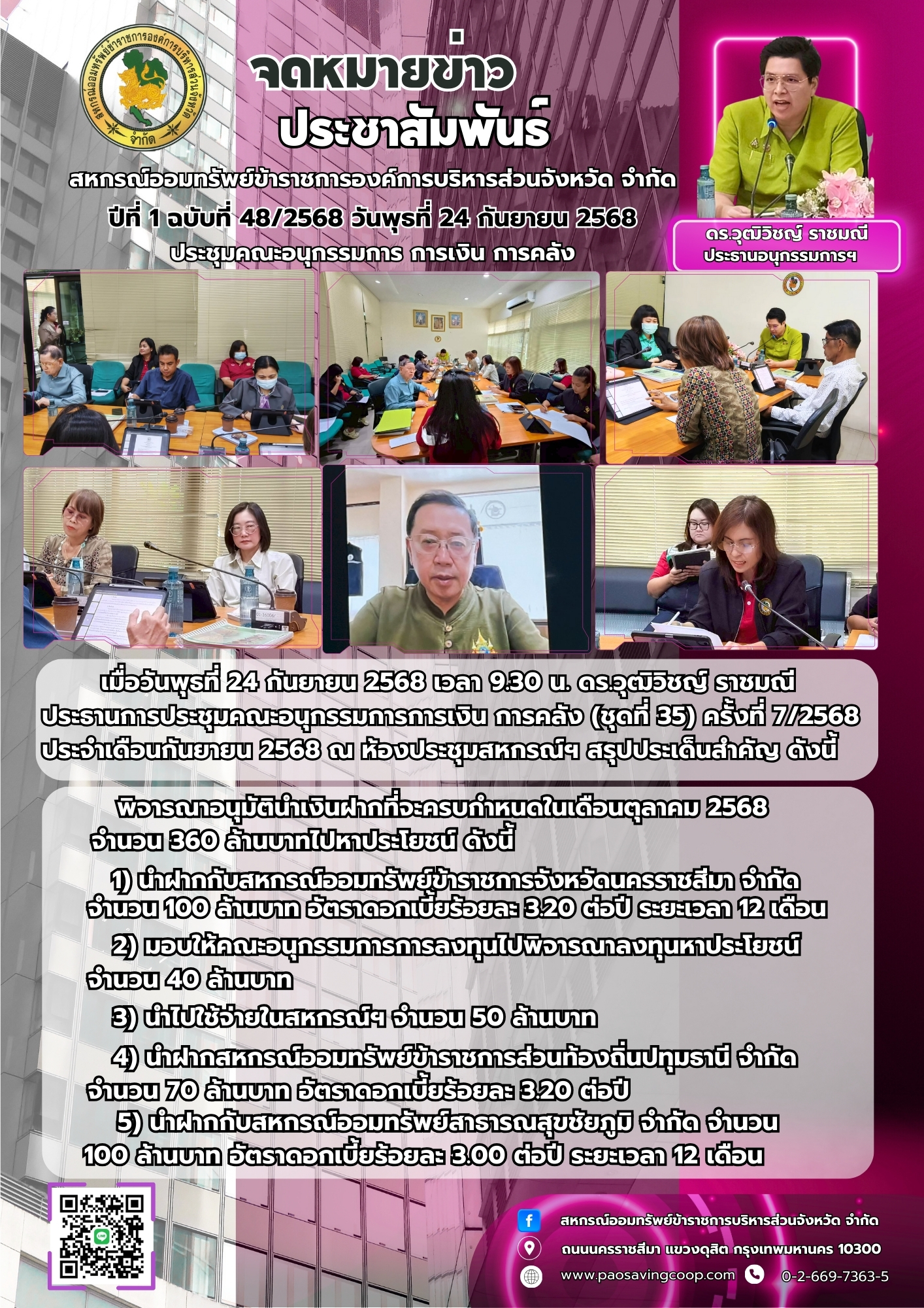การประชุมคณะอนุกรรมการ การเงิน การคลัง ปีที่ 1 ฉบับที่ 48 ประจำวันพุธที่ 24 กันยายน 2568...