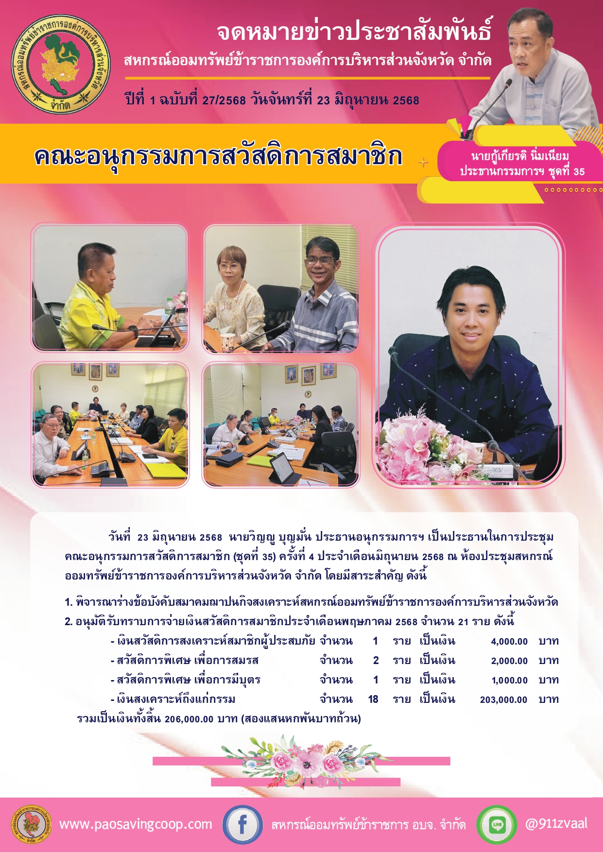จดหมายข่าวประชาสัมพันธ์ ปีที่ 1 ฉบับที่ 27/2568 วันอังคารที่ 23 มิถุนายน 2568