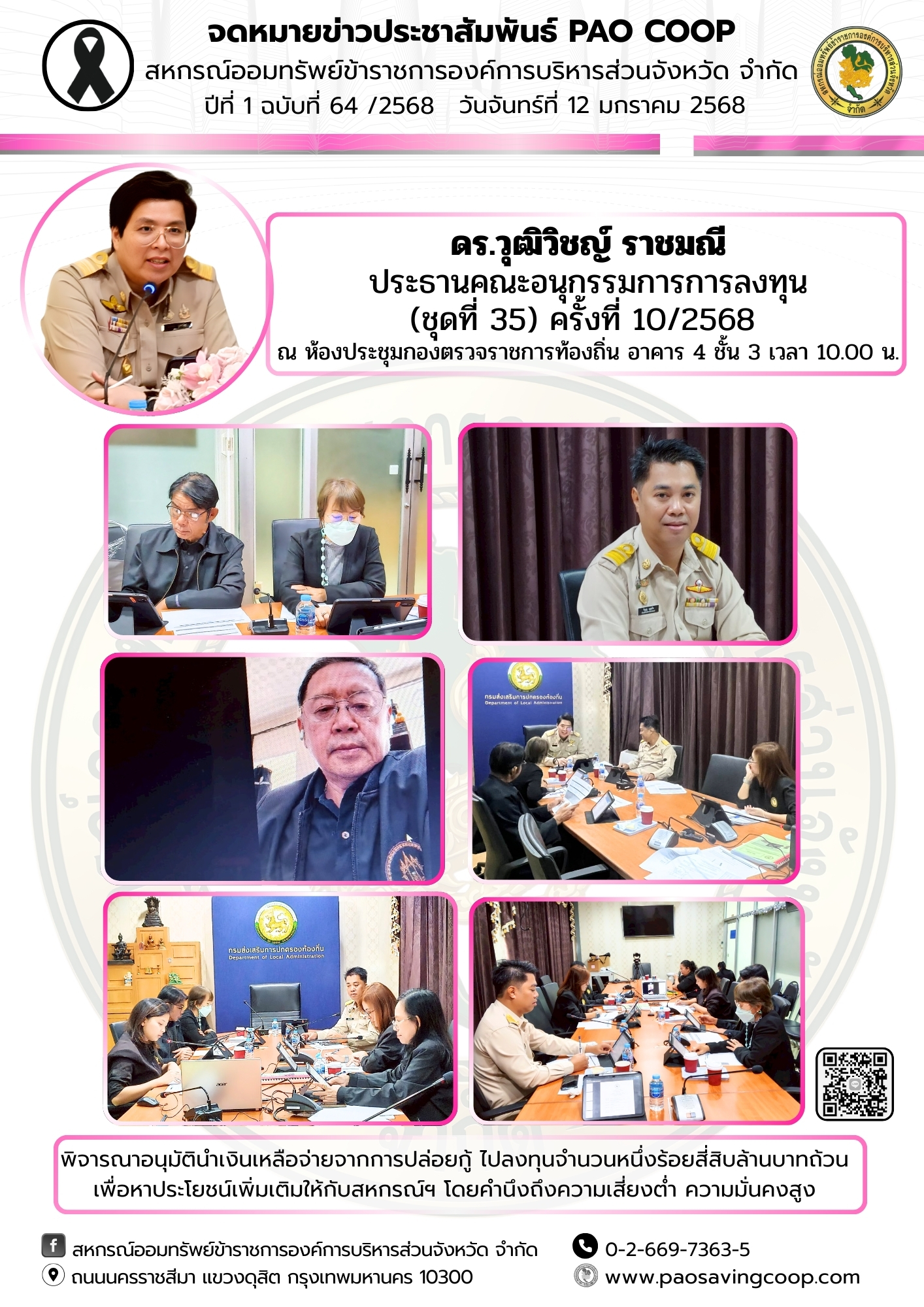 ประชุมคณะอนุกรรมการการลงทุน ฉบับที่ 64 ประจำวันจันทร์ที่ 12 มกราคม 2569