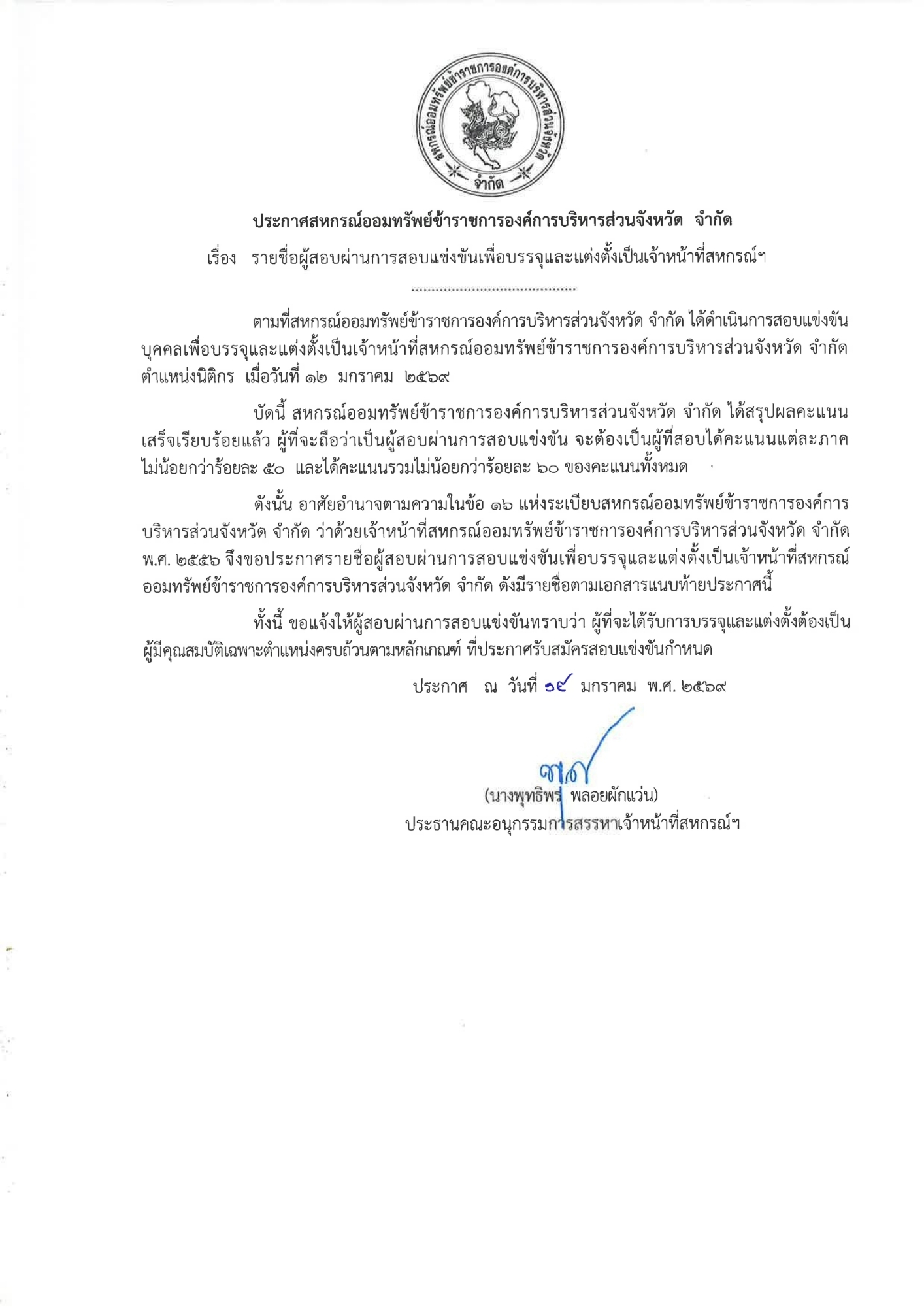 ประกาศ รายชื่อผู้สอบผ่านการแข่งขันเพื่อบรรจุและแต่งตั้งเป็นเจ้าหน้าที่สหกรณ์ฯ...