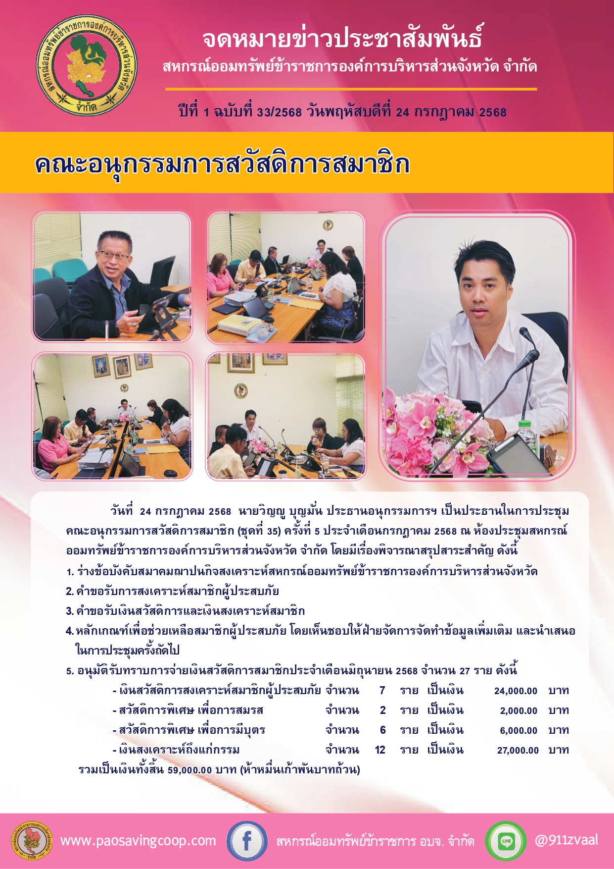 จดหมายข่าวประชาสัมพันธ์ ปีที่ 1 ฉบับที่ 33/2568 วันพฤหัสบดีที่ 24 กรกฎาคม 2568