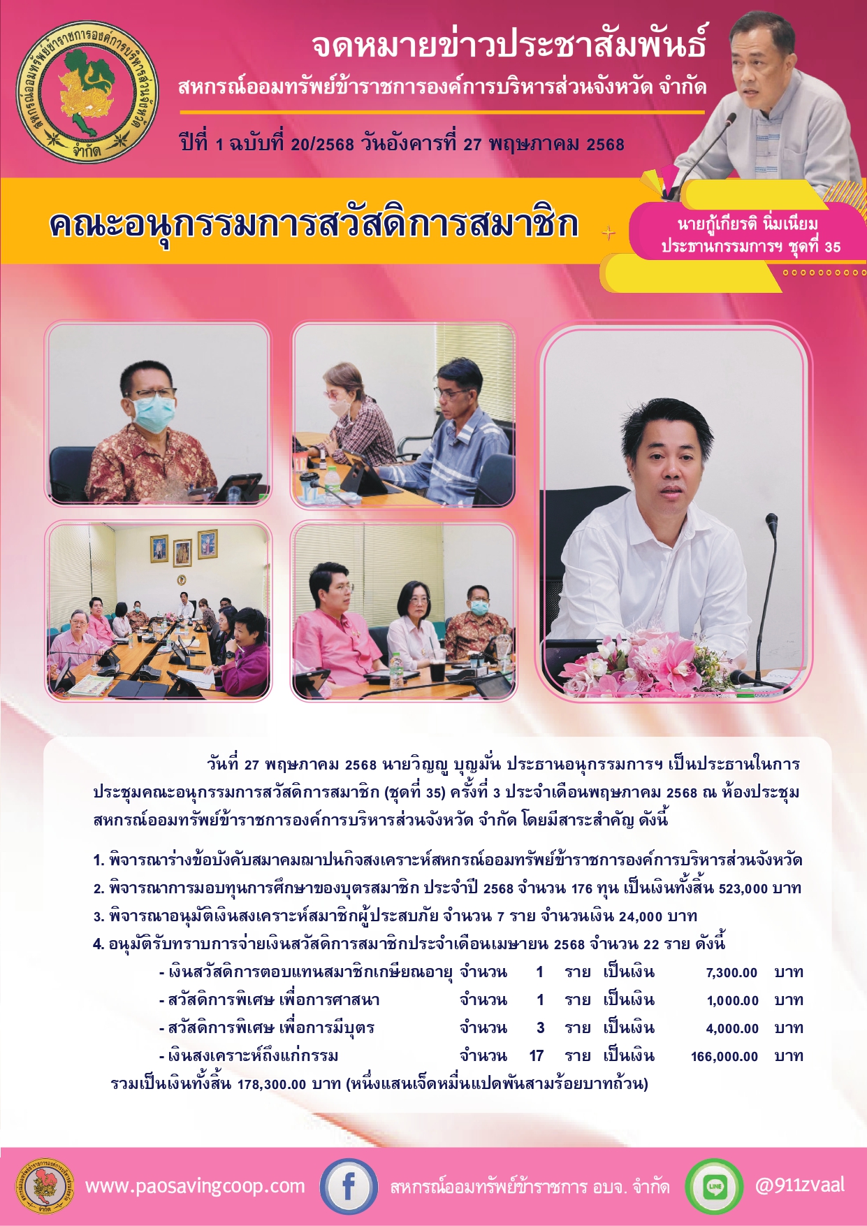 จดหมายข่าวประชาสัมพันธ์ ปีที่ 1 ฉบับที่ 20/2568 วันอังคารที่ 27 พฤษภาคม 2568
