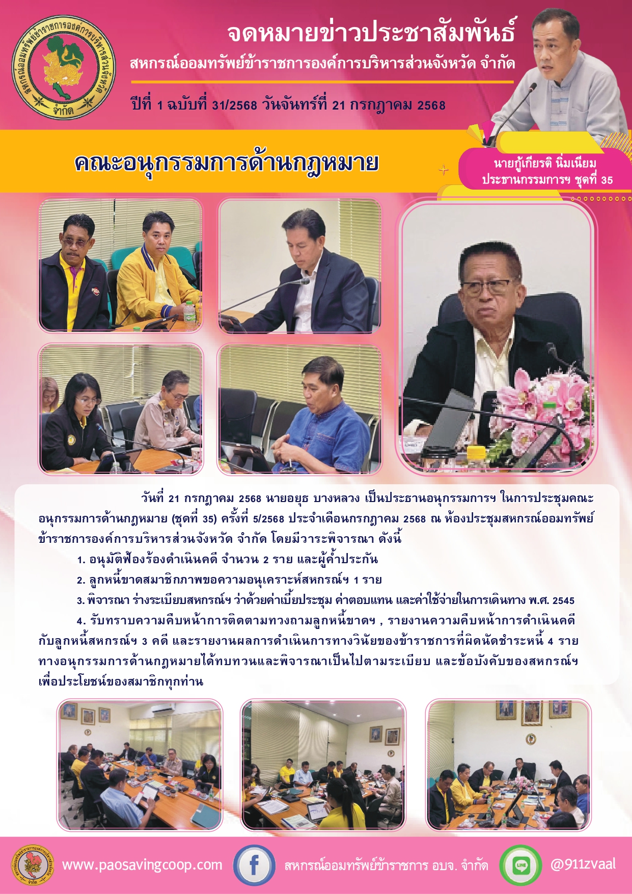 จดหมายข่าวประชาสัมพันธ์ ปีที่ 1 ฉบับที่ 31/2568 วันจันทร์ที่ 21 กรกฎาคม 2568