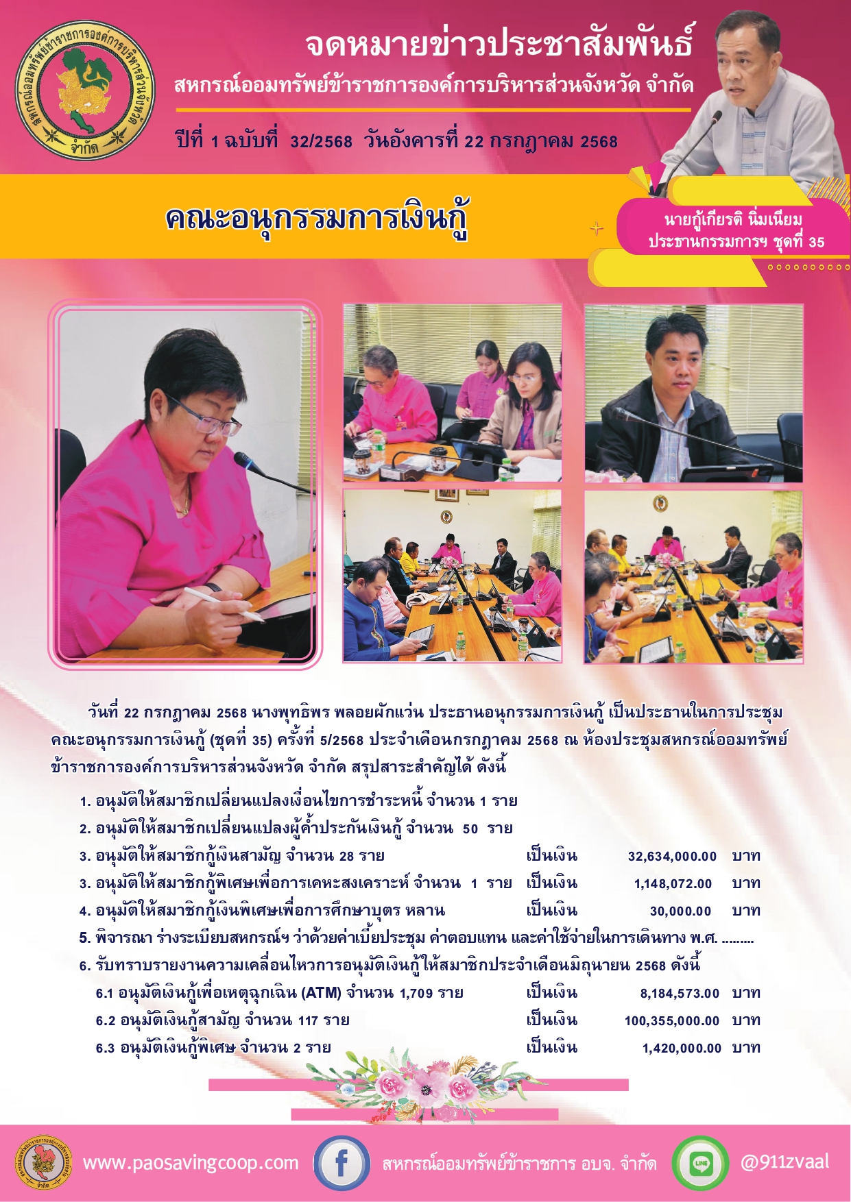 จดหมายข่าวประชาสัมพันธ์ ปีที่ 1 ฉบับที่ 32/2568 วันอังคารที่ 22 กรกฎาคม 2568